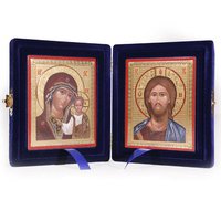 Икона Складень, экокожа, вышивка, рамка ...