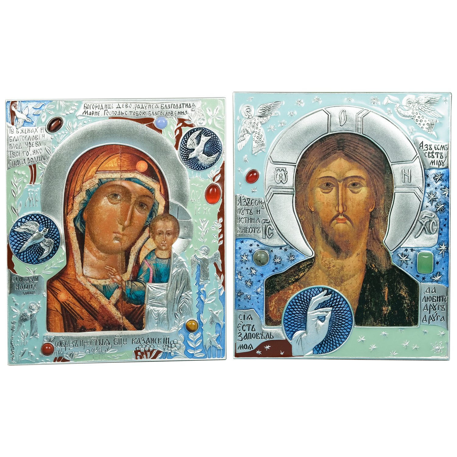 Икона "Святые целители" в окладе с сереб...