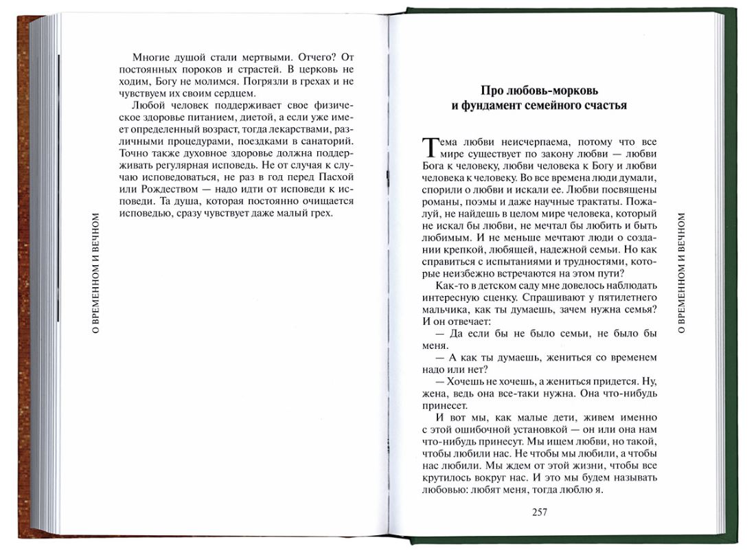 Книга пастырских бесед архимандрита Мелхиседека (Артюхина) «О временном и вечном» основана на встречах с молодежью в культурном центре «Вдохновение». Начиная с 2014 года такие встречи проводятся ежемесячно и собирают до пятисот слушателей со всех концов Москвы и даже из других регионов. И это неудивительно, ведь отец Мелхиседек живо и образно говорит о самых важных проблемах духовной жизни молодого поколения — о вере и неверии, о бессмертии души и путях спасения, о критериях успешности, о взаимном служении, об истинной любви и семейном счастье.