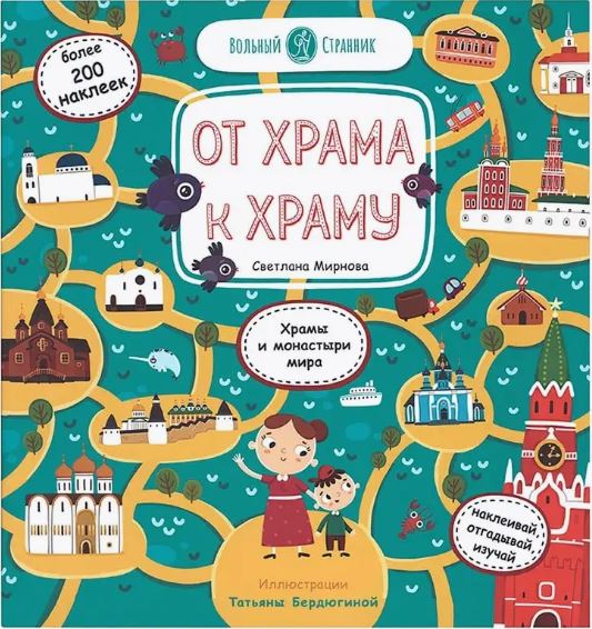 Отправляйтесь в путешествие вместе с Серёжей и его мамой от храма к храму, изучая святыни России и всего мира. Вы узнаете о главных храмах Москвы и Санкт-Петербурга, есть ли церковь в Антарктиде, как устроены храмы и монастыри. А ещё — где находится самый необычный храм! В этой книге более 200 наклеек! Они помогут вам запомнить, где расположены самые красивые православные храмы в России и во всём мире. С помощью наклеек можно также украсить иллюстрации в книге разными зверушками! На каждом развороте несколько интересных заданий на внимательность и закрепление знаний.