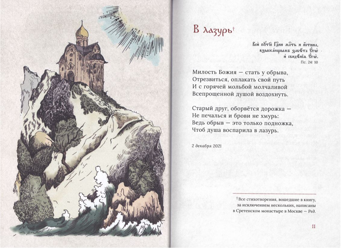 В новый поэтический сборник известного поэта и автора духовных песнопений иеромонаха Романа вошли стихотворения, написанные в Сретенском монастыре в 2021-2022 годах во время лечения от тяжелого заболевания. Жизнь в столице стала для отца Романа своего рода затвором, невольным подвигом, временем глубоких переживаний, размышлений и молитв. Все это отразилось в стихах, вошедших в сборник Представленные в книге стихотворения – о терпении и благодарности, о вере и доверии Богу, о принятии и истинном смысле посылаемых нам страданий и испытаний, о настоящем счастье и подлинной любви, о жизни земной и вечной. В этих стихах отец Роман делится с нами духовным опытом от пережитого и помогает найти тесный путь, ведущий ко спасению. Иеромонах Роман (в миру Александр Иванович Матюшин) родился 16 ноября 1954 года в селе Рябчёвске Трубчевского района Брянской области. Его отец, Иван Константинович, – участник Великой Отечественной войны. Мать, Зоя Николаевна, – сельская учительница. Она была верующим человеком и воспитала